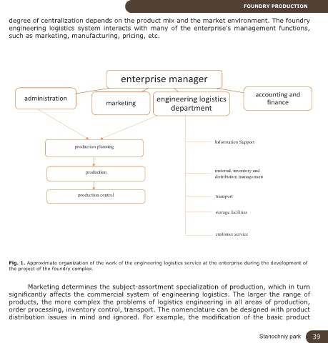 Fig. 1. Approximate organization of the work of the engineering logistics service at the enterprise during the development of