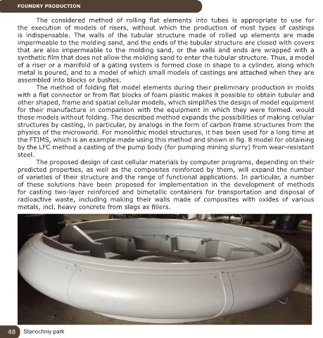 synthetic film that does not allow the molding sand to enter the tubular structure. Thus, a model