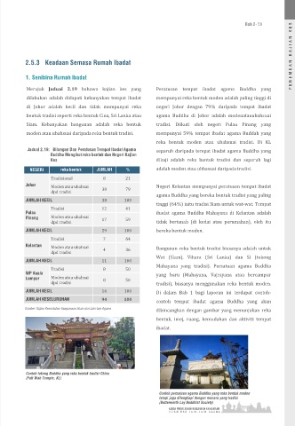 Jadual 2.19: Bilangan Dan Peratusan Tempat Ibadat Agama separuh daripada tempat ibadat agama Buddha yang
