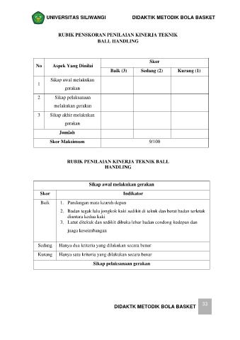 UNIVERSITAS SILIWANGI DIDAKTIK METODIK BOLA BASKET