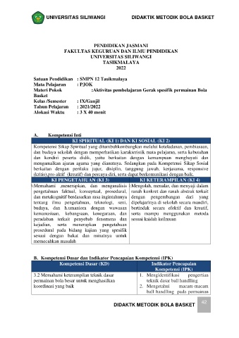 UNIVERSITAS SILIWANGI DIDAKTIK METODIK BOLA BASKET