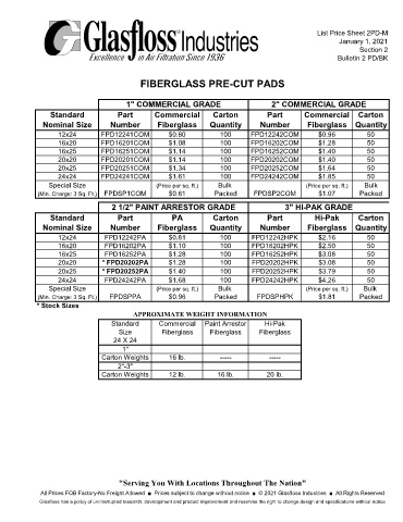 All Prices FOB Factory-No Freight Allowed ■ Prices subject to change without notice ■ © 2021 Glasfloss Industries ■ All Rights Reserved