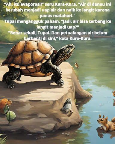 "Ah, itu evaporasi!" seru Kura-Kura. "Air di danau ini