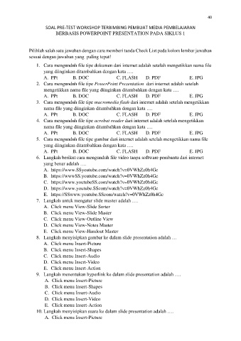 SOAL PRE-TEST WORKSHOP TERBIMBING PEMBUAT MEDIA PEMBELAJARAN