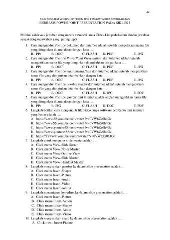 SOAL POST-TEST WORKSHOP TERBIMBING PEMBUAT MEDIA PEMBELAJARAN