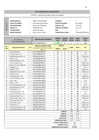 23 Dewi Wulansari, S. Pd. P BACEBADCECDECAD 13 2 13 87 Lulus