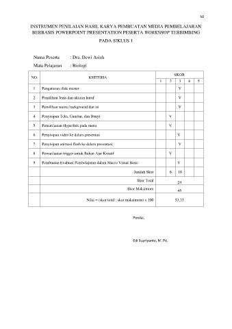 Nilai = (skor total : skor maksimum) x 100 53,33