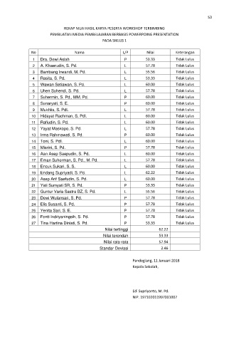 23 Dewi Wulansari, S. Pd. P 57.78 Tidak Lulus