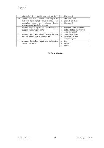 lain, apakah diberi penghargaan oleh sekolah? c. tidak pernah