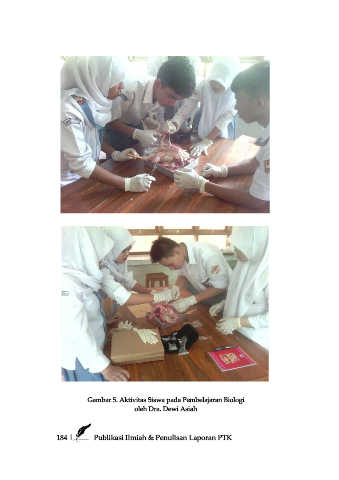 Gambar 5. Aktivitas Siswa pada Pembelajaran Biologi oleh Dra. Dewi Asiah 184 | Publikasi Ilmiah & Penulisan Laporan PTK
