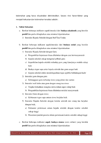 menjadi kekuatan dan kelemahan tersebut adalah: