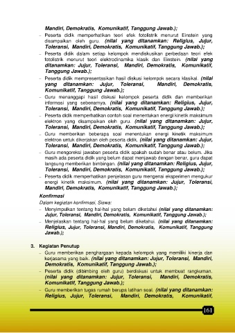 elektron yang disampaikan oleh guru. (nilai yang ditanamkan: Jujur,