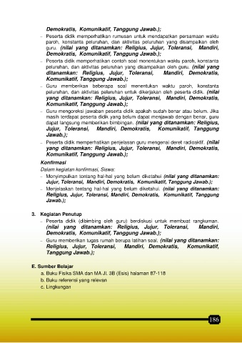 Jujur, Toleransi, Mandiri, Demokratis, Komunikatif, Tanggung