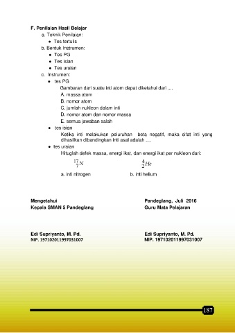 F. Penilaian Hasil Belajar