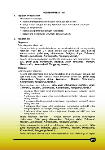 guru. (nilai yang ditanamkan: Religius, Jujur, Toleransi, Mandiri,