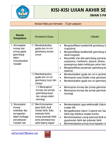 KISI-KISI UJIAN AKHIR SEMESTER FISIKA KELAS XII