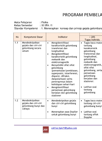 Standar Kompetensi : 1. Menerapkan konsep dan prinsip gejala gelombang dalam menyelesaikan masalah
