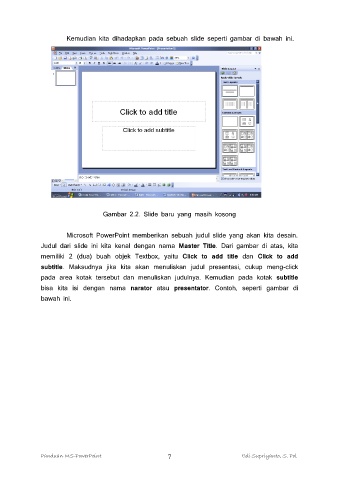 Microsoft PowerPoint memberikan sebuah judul slide yang akan kita desain.