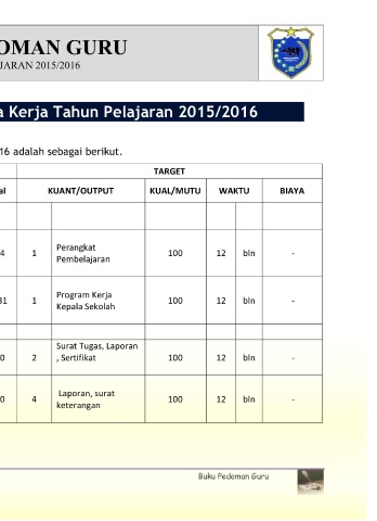 C. Target Pencapaian Rencana Kerja Tahun Pelajaran 2015/2016