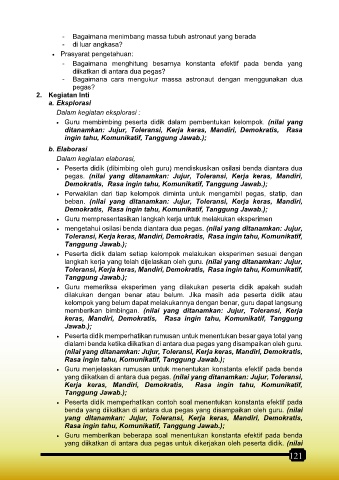 yang diikatkan di antara dua pegas. (nilai yang ditanamkan: Jujur, Toleransi,