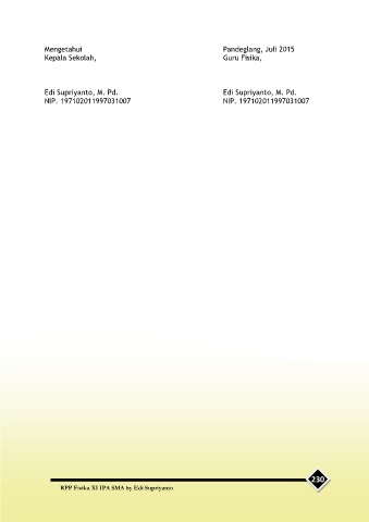 Mengetahui Pandeglang, Juli 2015 Kepala Sekolah, Guru Fisika, Edi Supriyanto, M. Pd. Edi Supriyanto, M. Pd. NIP. 197102011997031007 NIP. 197102011997031007 230 RPP Fisika XI IPA SMA by Edi Supriyanto