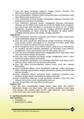 hidrostatika dengan cara tanya jawab. Guru memberi penekanan materi yang