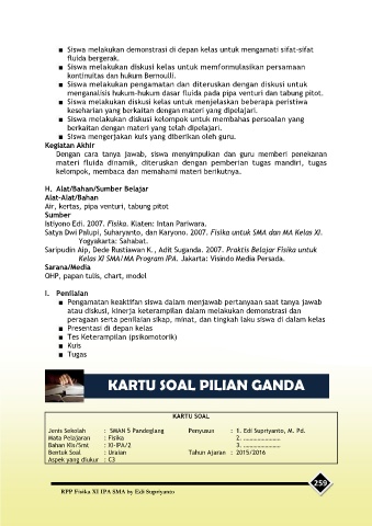 materi fluida dinamik, diteruskan dengan pemberian tugas mandiri, tugas