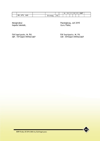 A B C D E OMT UH, UTS, UAS 36 orang Sd Mengetahui Pandeglang, Juli 2015 Kepala Sekolah, Guru Fisika, Edi Supriyanto, M. Pd. Edi Supriyanto, M. Pd. NIP. 197102011997031007 NIP. 197102011997031007 265 RPP Fisika XI IPA SMA by Edi Supriyanto