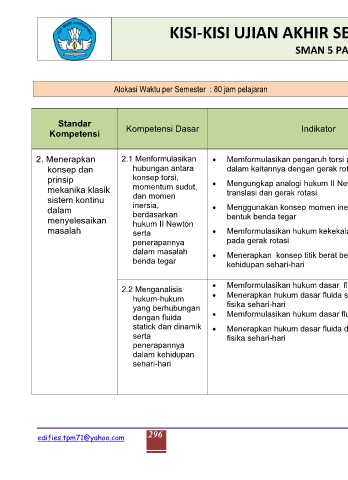 KISI-KISI UJIAN AKHIR SEMESTER FISIKA KELAS XI