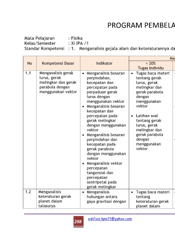 Standar Kompetensi : 1. Menganalisis gejala alam dan keteraturannya dalam cakupan mekanika benda titik