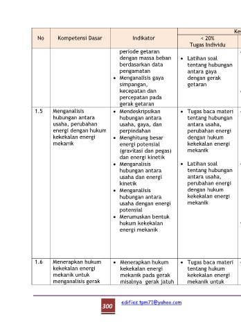 No Kompetensi Dasar Indikator < 20% 20% - 50% > 50% Penilaian Keterangan
