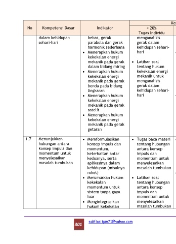 No Kompetensi Dasar Indikator < 20% 20% - 50% > 50% Penilaian Keterangan