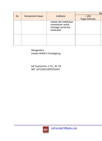 No Kompetensi Dasar Indikator < 20% 20% - 50% > 50% Penilaian Keterangan