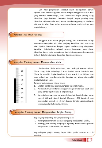 Mistar ini memiliki tingkat ketelitian 1 mm atau 0,1 cm. Mistar yang