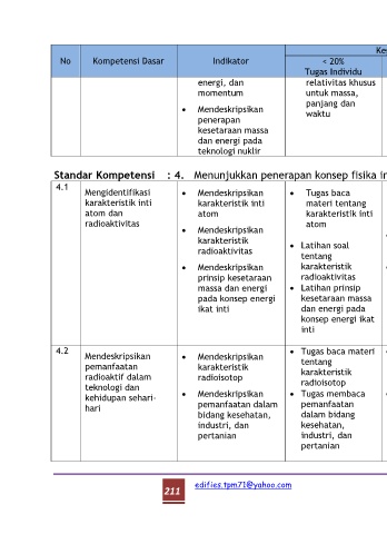 No Kompetensi Dasar Indikator < 20% 20% - 50% > 50% Penilaian Keterangan