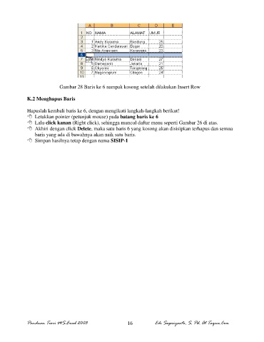 Gambar 28 Baris ke 6 nampak kosong setelah dilakukan Insert Row