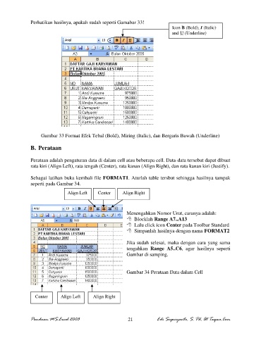 Gambar 33 Format Efek Tebal (Bold), Miring (Italic), dan Bergaris Bawah (Underline)