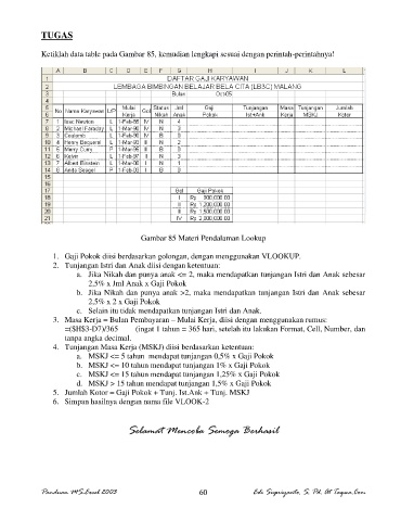 1. Gaji Pokok diisi berdasarkan golongan, dengan menggunakan VLOOKUP.