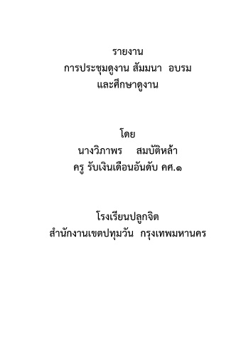รายงาน การประชุมดูงาน สัมมนา อบรม และศึกษาดูงาน โดย นางวิภาพร สมบัติหล้า ครู รับเงินเดือนอันดับ คศ.๑ โรงเรียนปลูกจิต ส านักงานเขตปทุมวัน กรุงเทพมหานคร