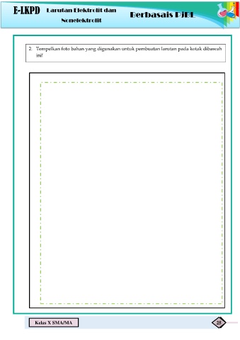 E-LKPD Larutan Elektrolit dan Nonelektrolit Berbasais PjBL 2. Tempelkan foto bahan yang digunakan untuk pembuatan larutan pada kotak dibawah ini! Kelas X SMA/MA 25
