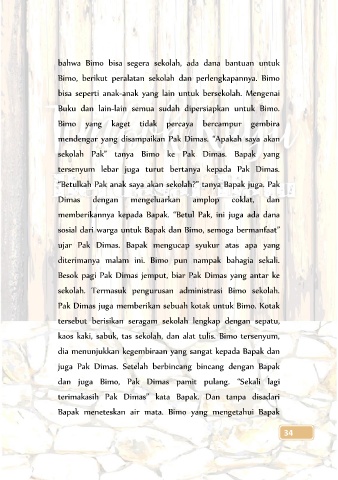 kaos kaki, sabuk, tas sekolah, dan alat tulis. Bimo tersenyum,