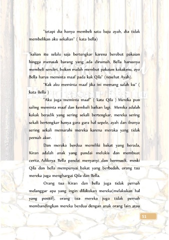 Bella harus meminta maaf pada kak Qila" (nesehat Ayah).