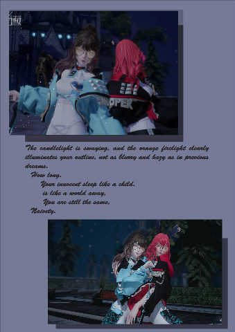 The candlelight is swaying, and the orange firelight clearly