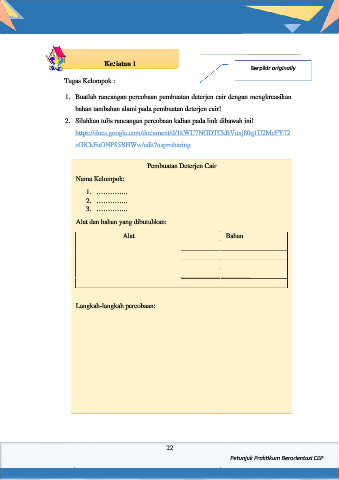 1.  Buatlah rancangan percobaan pembuatan deterjen cair dengan mengkreasikan