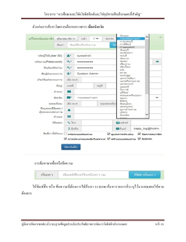ให้พิมพ์ชอ หรอ ข้อความทต้องการให้ค้นหา ระบบจะค้นหารายการทระบไว้มาแสดงผลให้ตาม