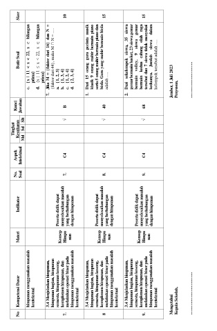 No Kompetensi Dasar Materi Indikator Kesukaran Butir Soal Skor
