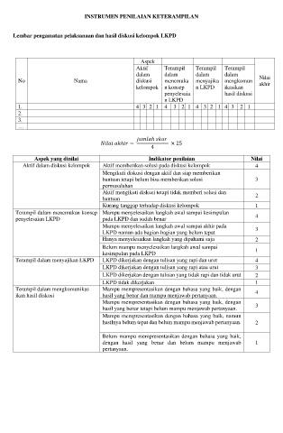 Lembar pengamatan pelaksanaan dan hasil diskusi kelompok LKPD