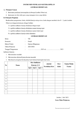 3. Instrumen penilaian keterampilan ini berupa Lembar Observasi.
