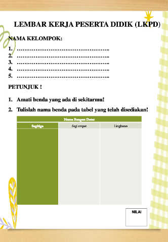 2. Tulislah nama benda pada tabel yang telah disediakan!
