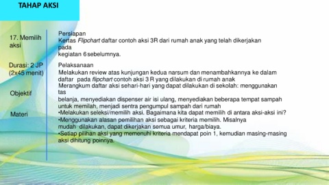 17. Memilih Kertas Flipchart daftar contoh aksi 3R dari rumah anak yang telah dikerjakan